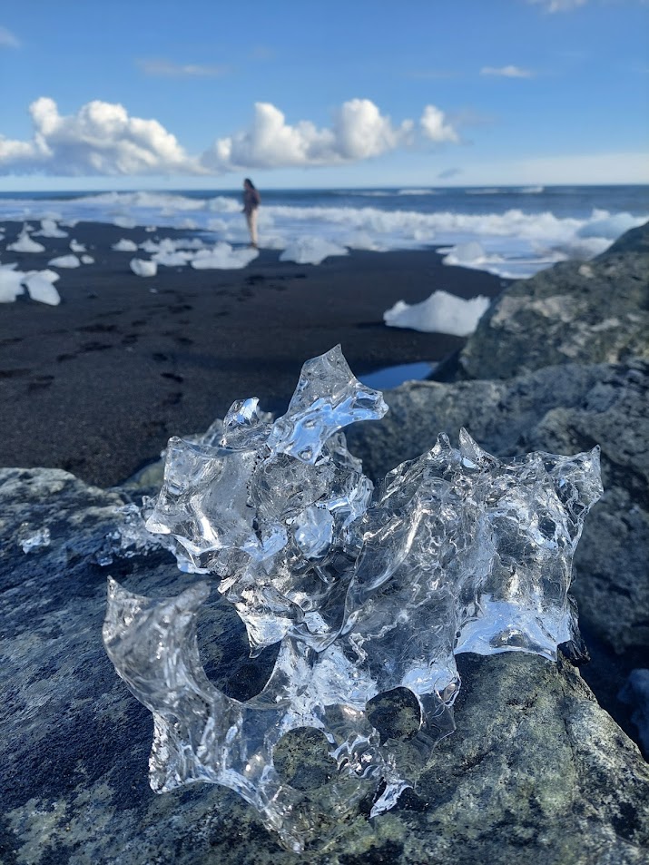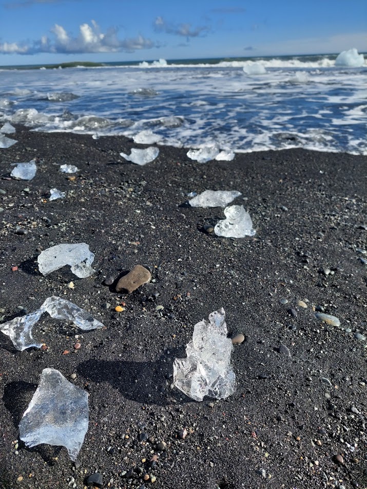 Отправили сме се към Diamond beach и лагуната на Jökulsárlón. Природата е изваяла най-различни чудновати форми от разтапящия се лед, а последните късчета биват изхвърлени от вълните на черния пясък и блещукат като диаманти. С мъничко късмет може да се видят и тюлени. Определено тази спирка ни е фаворитът за цялата обиколка.