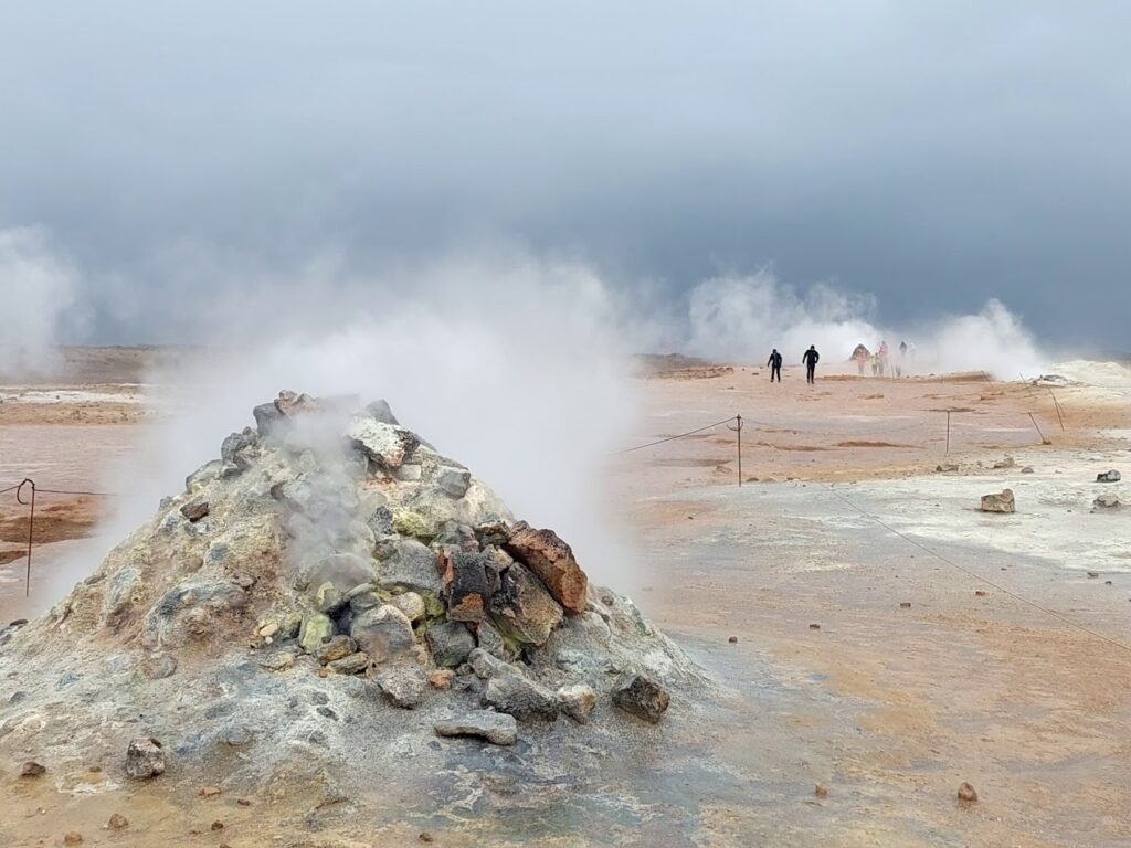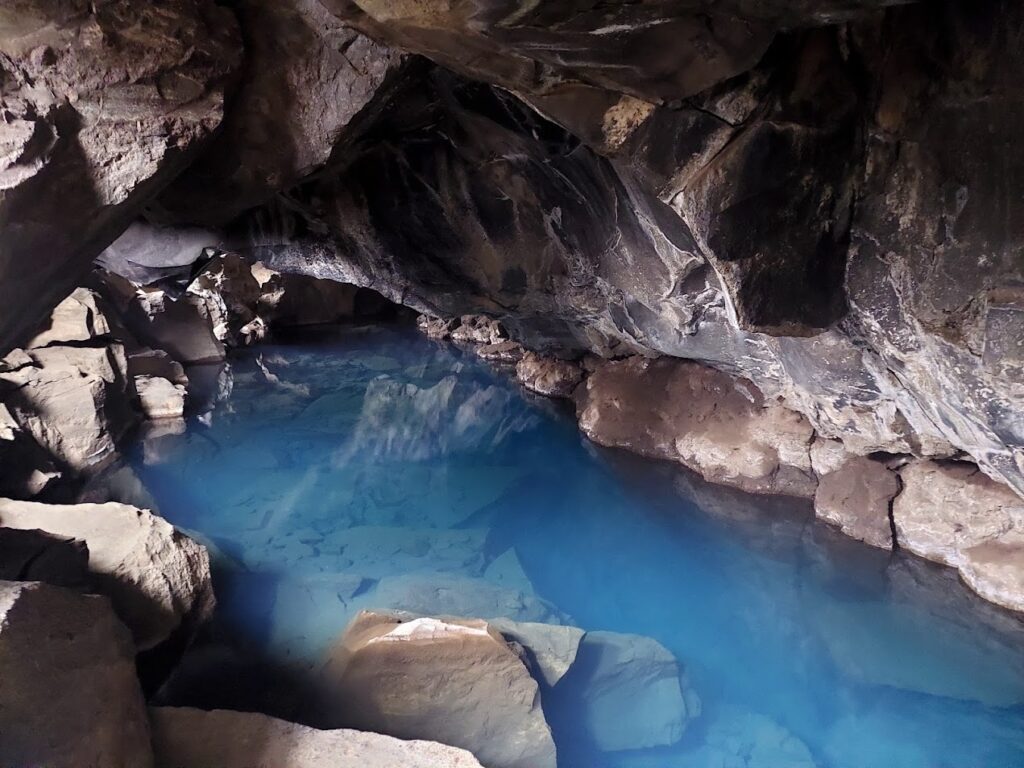 Все едно на друга планета: Hveri и пещерата Grjótagjá долу.