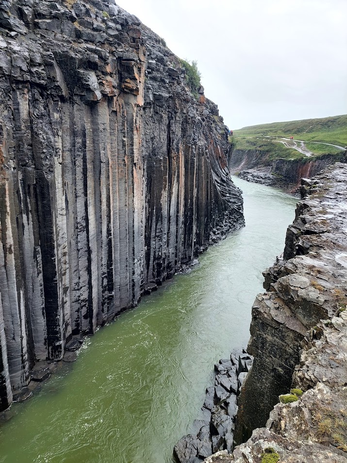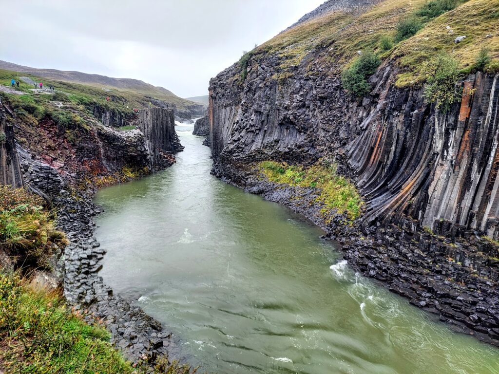 Каньонът Stuðlagil привлича туристите със своите изваяни базалтови колони.