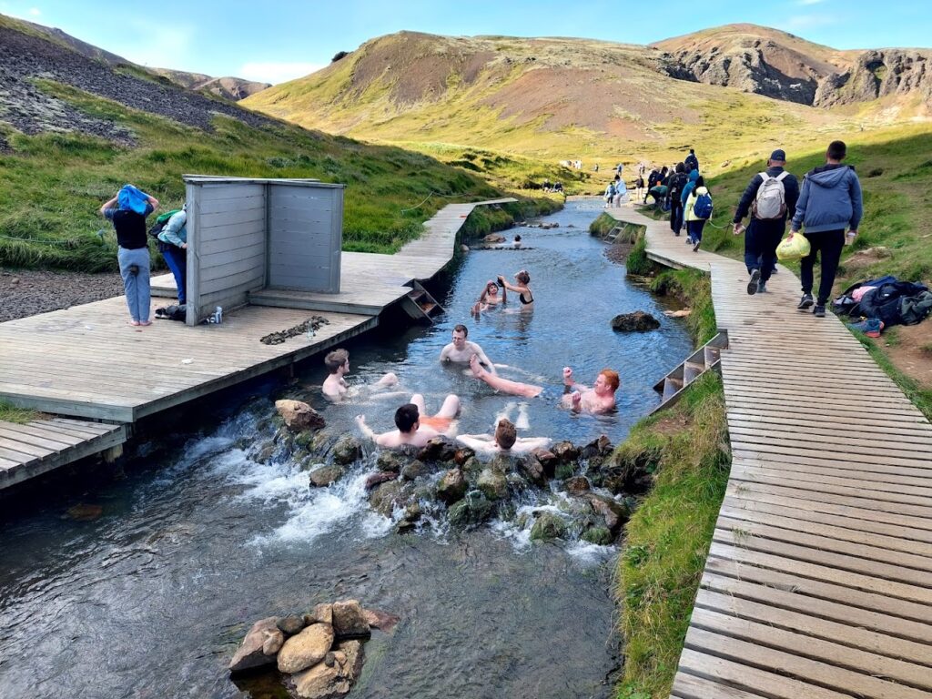 Не просто басейнче с топла вода, а цяла река /Reykjadalur/! Колкото по-нагоре отивате, толкова по-топло /и чисто/ е. Отнема час и малко в посока от паркинга.